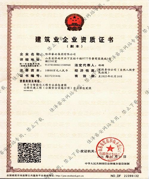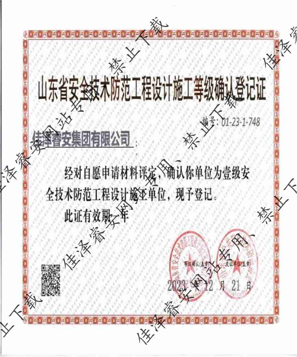 安全技術(shù)防范工程設(shè)計(jì)施工等級確認(rèn)登記證書