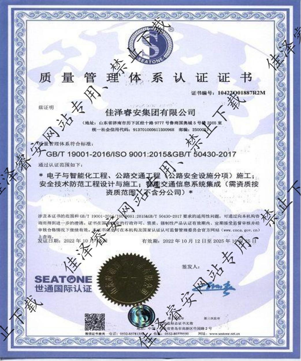 質(zhì)量管理體系認(rèn)證證書
