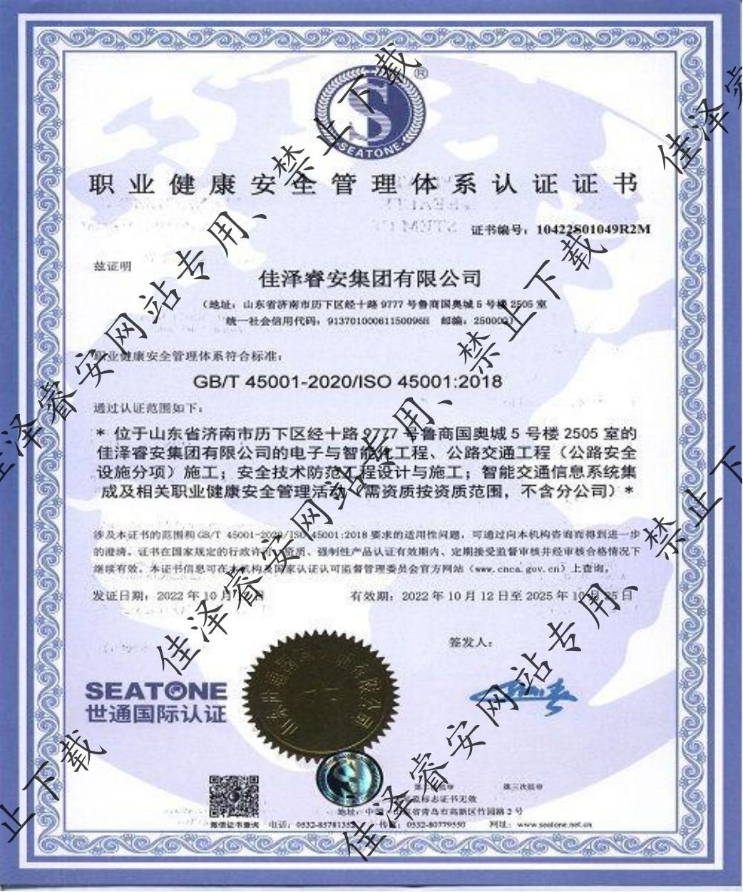 職業(yè)健康安全管理認(rèn)證證書