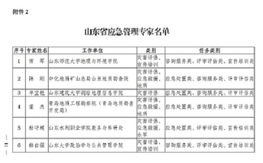 為充分發(fā)揮專家的決策咨詢和技術支撐作用,切實提高全省應急管理的科技水平,提升綜合防災減災救災能力,有效應對安全生產(chǎn)類、自然災害類突發(fā)事件,根據(jù)《山東省應急管理專家管理辦法》(魯應急發(fā)〔2021〕6號)和《山東省應急管理專家遴選實施辦法》(魯應急辦發(fā)〔2021〕3號),省應急廳組織開展了應急管理專家遴選工作。經(jīng)申報、初審、審定和公示等遴選程序,決定聘閃淳昌等86名同志為山東省應急管理咨詢專家(附件1)、常軍等1711名同志為山東省應急管理專家(附件2)?,F(xiàn)予以公布,聘期3年。聘期內(nèi)實施動態(tài)管理,在聘情況以省應急廳網(wǎng)站專家查詢系統(tǒng)顯示信息為準。